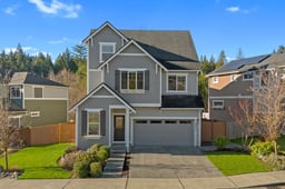Stunning Shadowood home! 4 bed, 3.5 bath home backing to a peaceful greenbelt—straight out of Magnolia or Better Homes & Gardens. This 2,529 sq ft home is filled with abundant natural light. The open-concept main level features an inviting great room with gas fireplace, dining space, and sliders leading to the beautifully manicured backyard. The designer kitchen shines with white cabinetry, subway tile backsplash and updated fixtures. Frigidaire Gallery stainless steel appliances, including a convection oven with air fryer. Engineered bamboo floors flow throughout, complemented by a large island with bar seating. The bright entryway welcomes you with a charming receiving parlor or office nook, plus an updated powder room. Upstairs, enjoy a generous primary suite with dual-sink vanities, oversized soaking tub, and large walk-in closet. Spacious laundry room and linen storage on the second floor add everyday convenience. The third floor offers ideal separate living quarters or private office space with loft and ¾ bath—perfect for guests or work-from-home flexibility. Additional highlights include ceiling fans in bedrooms, blinds throughout, understair storage, security cameras, automatic sprinklers, new A/C, and a beautifully maintained yard. Community playground across the street. A truly turnkey home in an exceptional setting. Conveniently located near shopping and dining, minutes to HWY 2 and HWY 9 commuter routes.